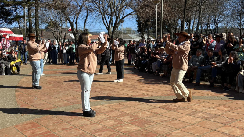El Taller de Cueca Semillita Cuequera, dirigido por Mario Sáez Cartes, deleitó al público con sus coreografías folclóricas, mientras que se entregó un reconocimiento a la pareja de bailarines Boris y María Antonia, quienes representarán a la comuna en el Provincial de Cueca Escolar.